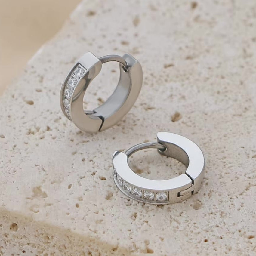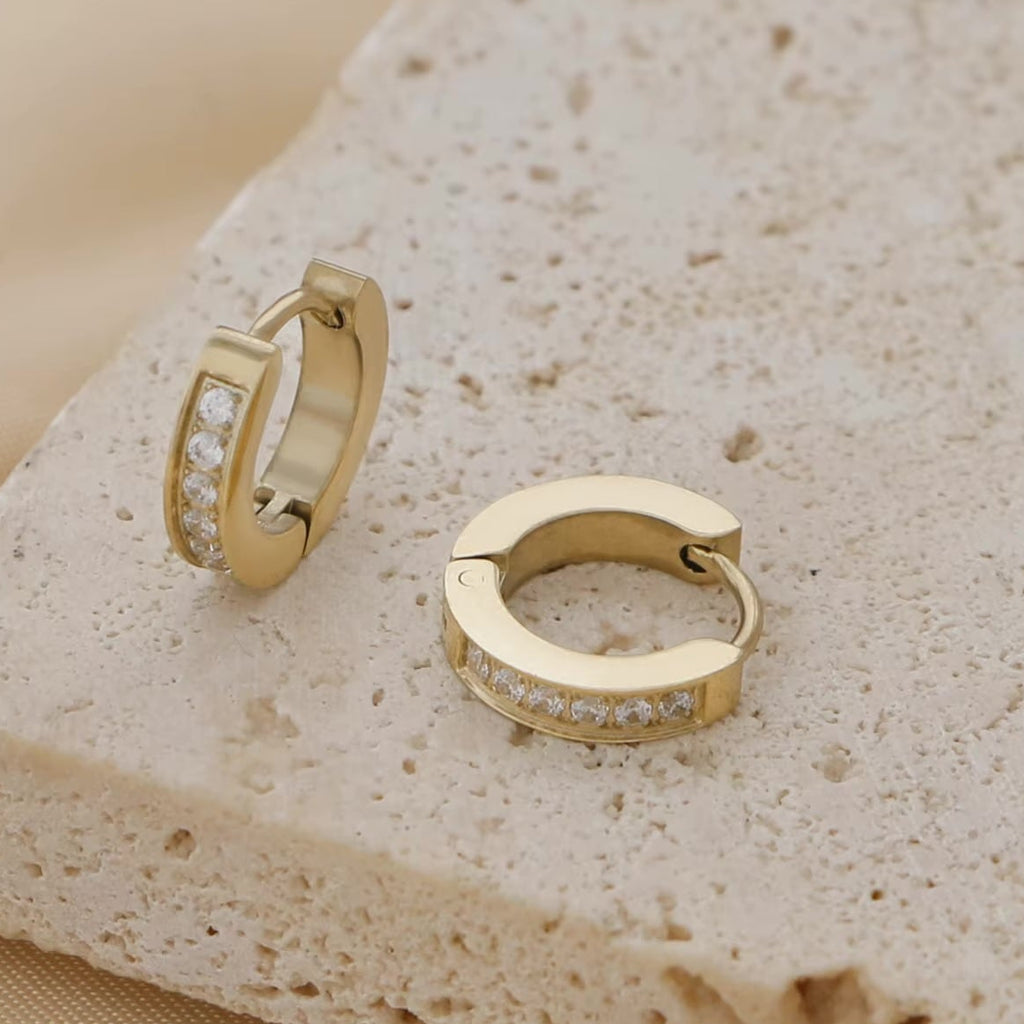 18K Gold Plated Stainless Steel with zirconia huggies.