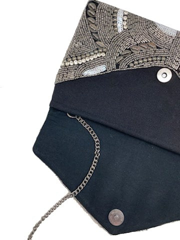 This versatile handcrafted clutch seamlessly transitions from an elegant handheld piece to a sophisticated cross-body bag with its included 45" polished silver chain strap. Crafted from premium jute cotton and thoughtfully lined for durability, each piece is meticulously made by hand in India.