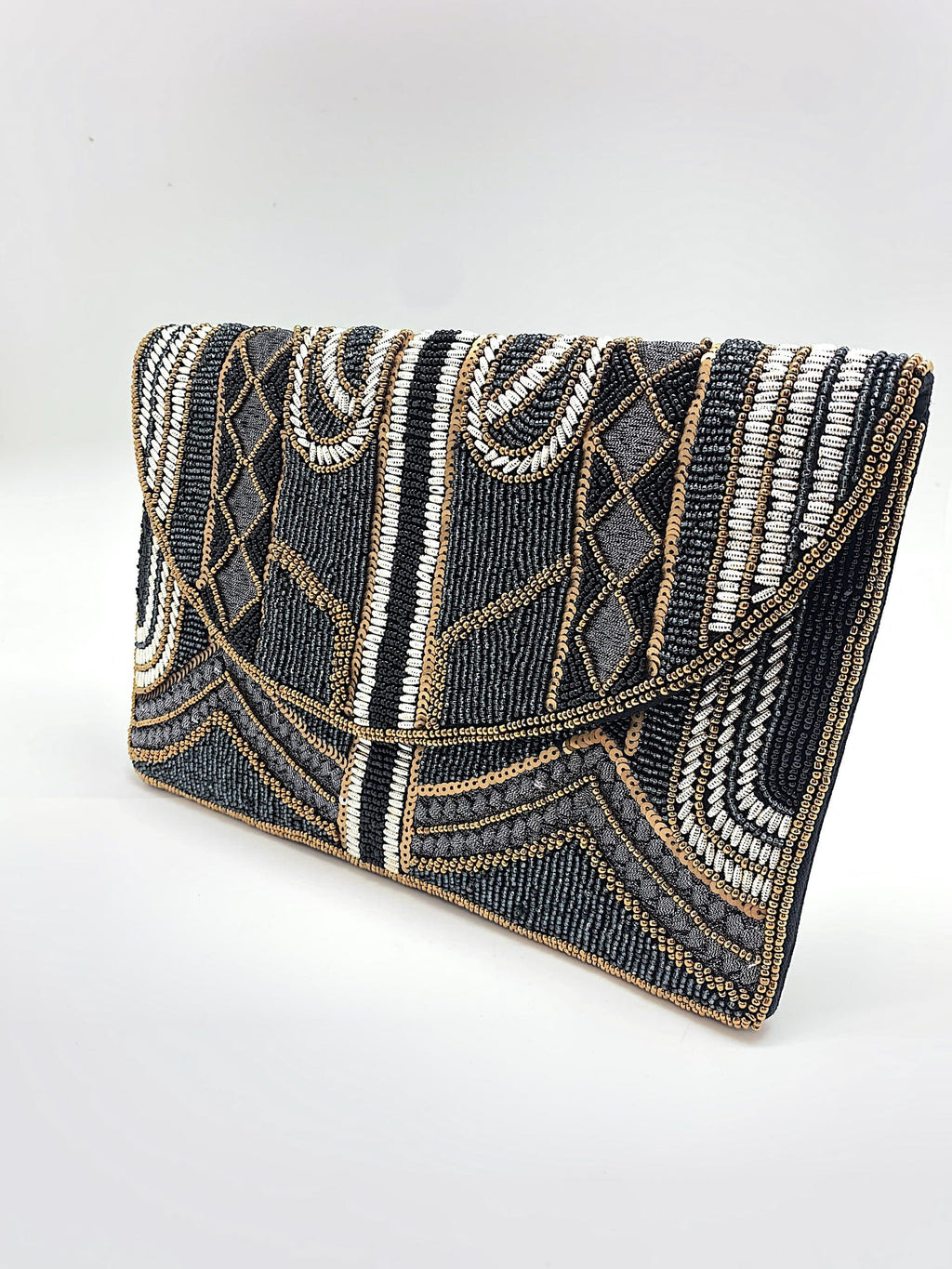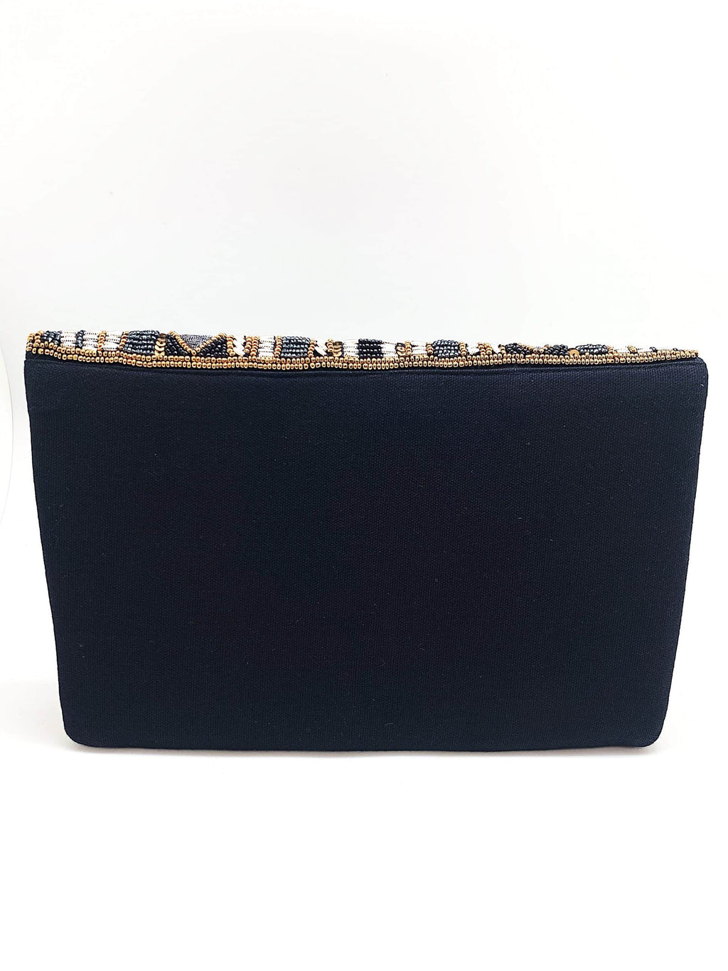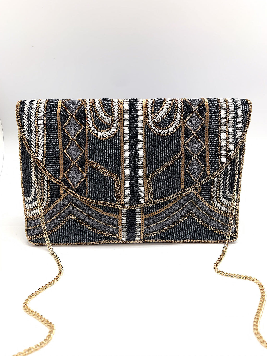 This versatile handcrafted clutch seamlessly transitions from an elegant handheld piece to a sophisticated cross-body bag with its included 45" polished gold chain strap. Crafted from premium jute cotton and thoughtfully lined for durability, each piece is meticulously made by hand in India.