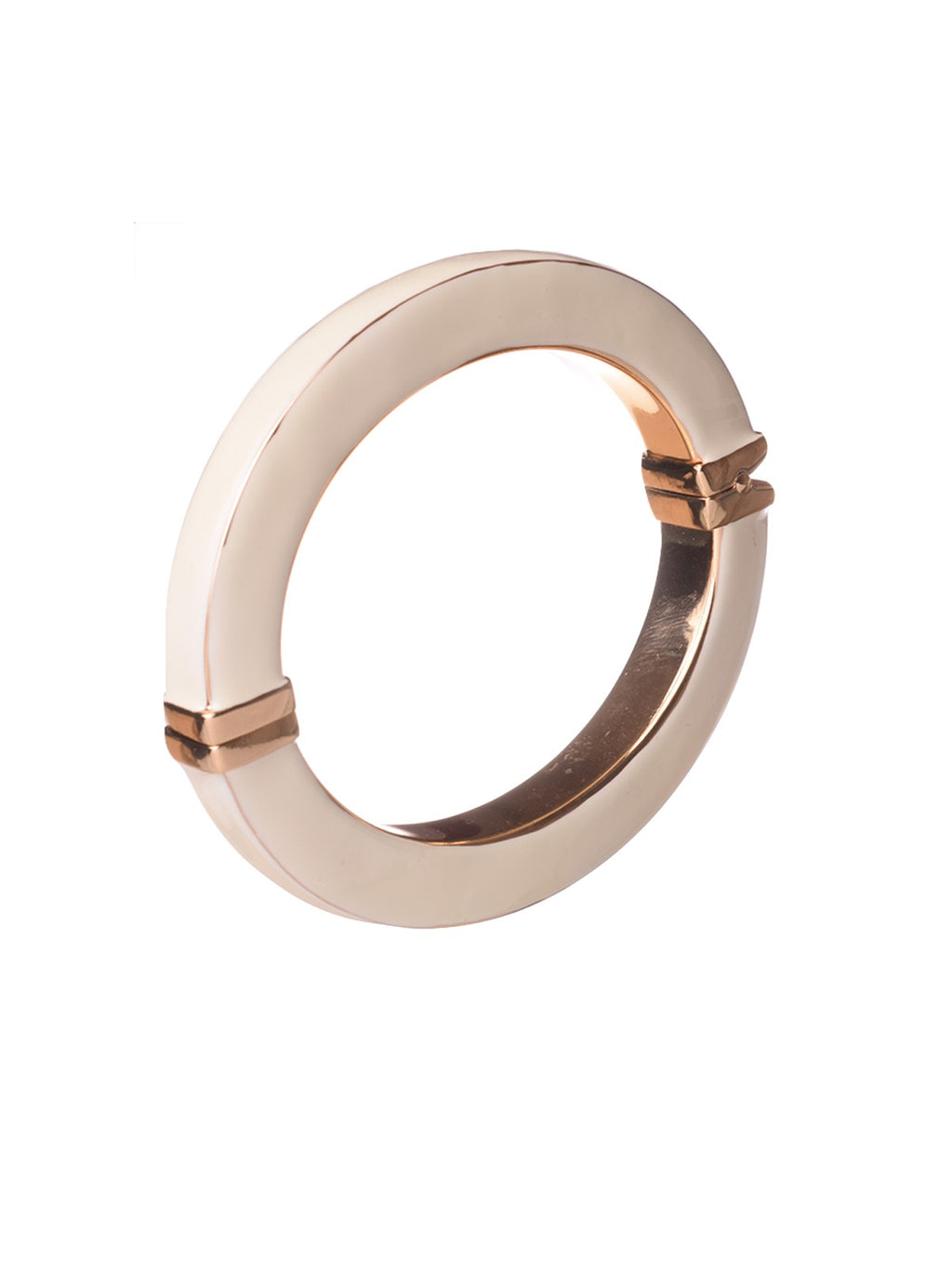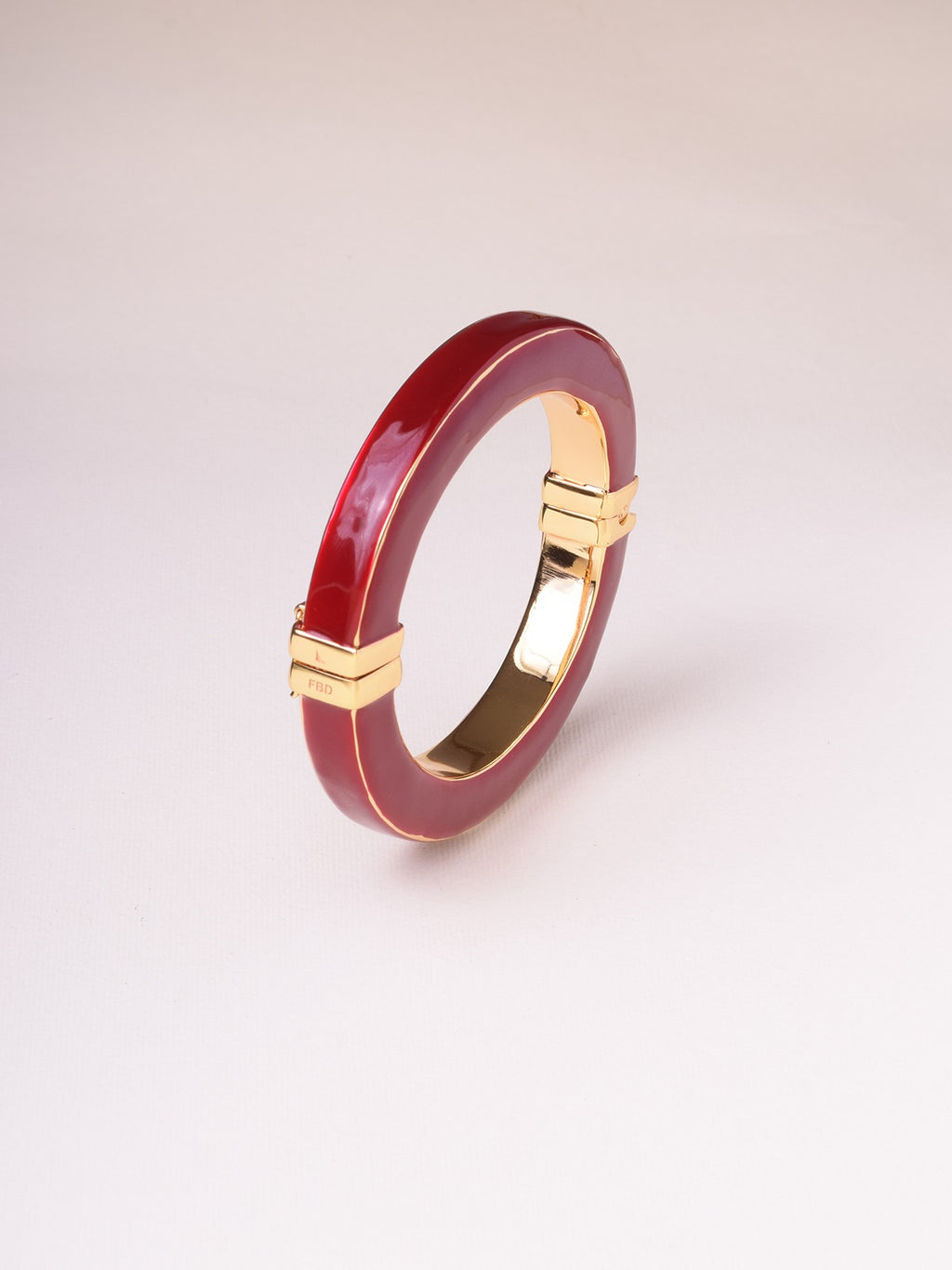The Bangle Olivia Ivory or Bordeaux is 24-karat gold plated and enameled by Tuscan artisans. It has an oval shape to fit the wrist perfectly, and is easy to wear thanks to the side opening. When dressed, the elegant ottino clasp secures the bracelet. The bangle section is machined to make it square, a property which gives shine. Of the four surfaces, three are enameled leaving the edges uncovered, while the inner one is completely gold plated.
