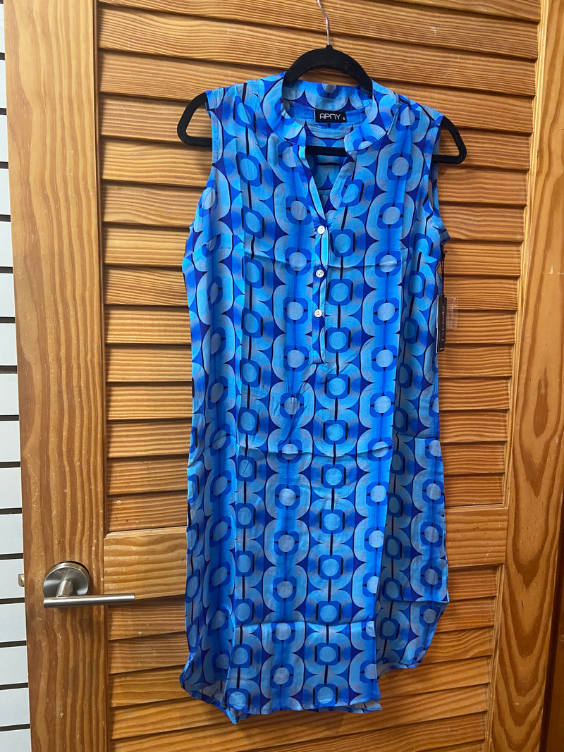 Beautiful sleeveless half button-up dress designed in New York, USA.