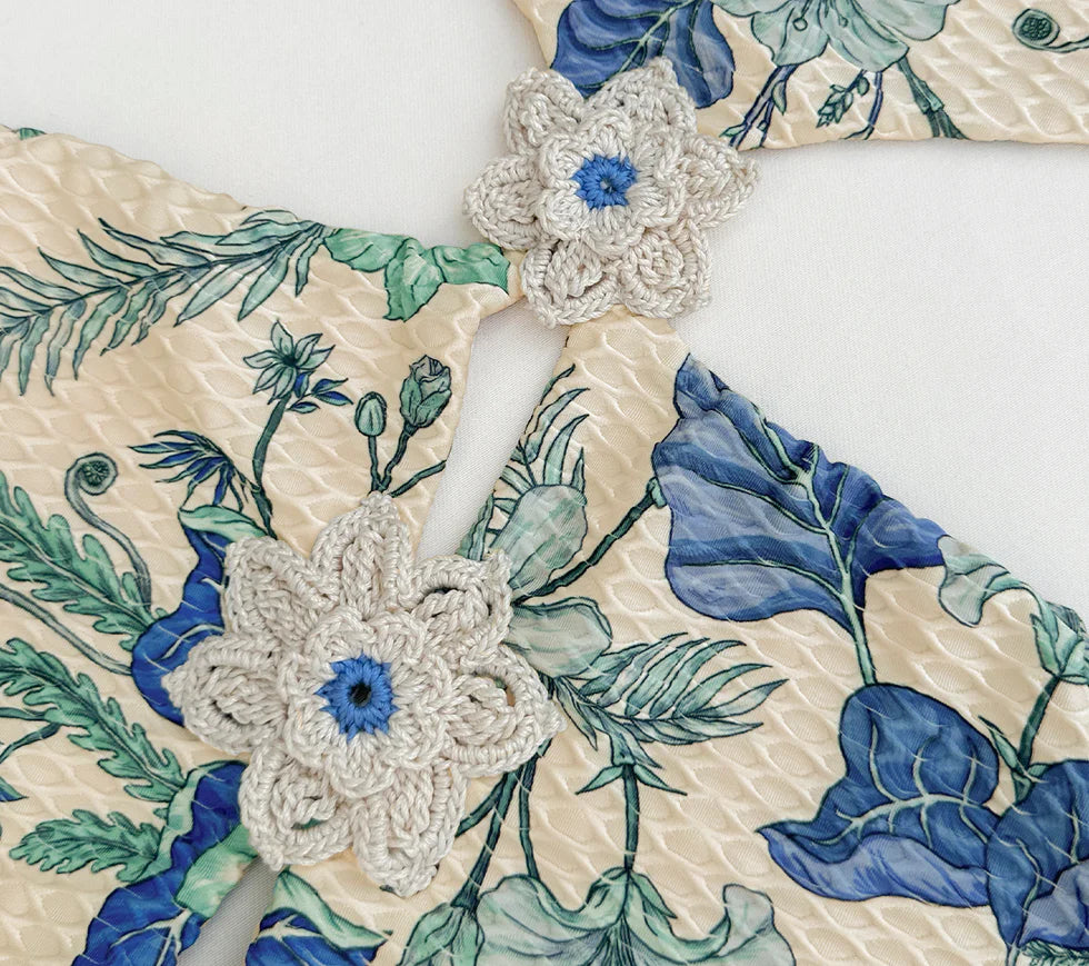 This beautiful one-piece features a halter neckline and intricate cut-out accents, adorned with delicate crochet flower appliqués on the front. Each swimsuit is crafted by hand in collaboration with skilled Peruvian artisan weavers, blending traditional craftsmanship with refined design.